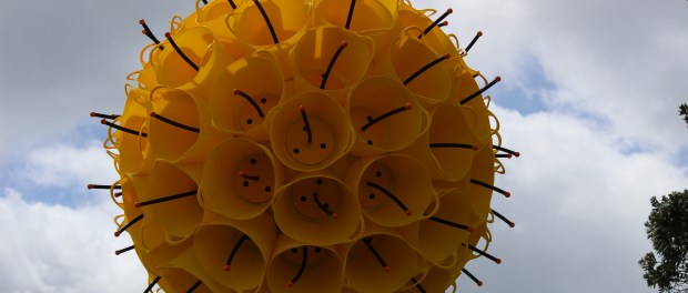Last weekend my friend Rachel and I went wandering (with my camera) around the NZ Sculpture onshore exhibition at Fort Takapuna Reserve in Devonport. With panoramic views out to Rangitoto Island as the back-drop, we strolled along the cliff front where dotted across fields, in trees, along pathways, sculpture creations were springing out of the ground or swaying in the breeze. Some things just seemed odd – an artwork made of icing sugar; a gigantic lamp-post amongst a backyard of miniature rows of houses. It was all inspiring in its own way. As a voluntary-run event which was raising funds for Women’s Refuge – it was great to support an incredible cause and I look forward to next year’s event.